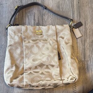 Coach - Beige and Brown Shoulder Bag with Gold Accents