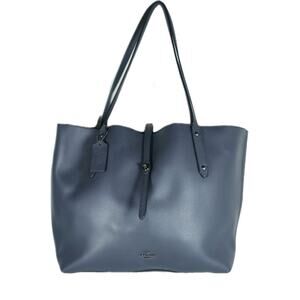 Coach Market 58849 Dark Gray/blue Pebbled Leather Turnlock Tote Shoulder Bag