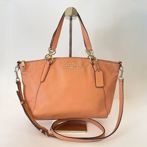 Coach Small Kelsey Pink/Tan Pebbled Leather Shoulder Hand Bag